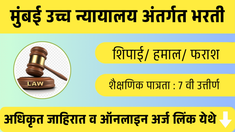 मुंबई उच्च न्यायालय अंतर्गत (मुख्यपीठ मुंबई, नागपूर खंडपीठ, औरंगाबाद खंडपीठ) शिपाई/हमाल/फराश भरती 2025